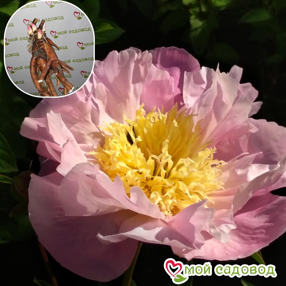 Цветок японской формы с широкими светло-розовыми лепестками, окружающими плотный шар из кружевных изогнутых стаминодий бледно-жёлтого цвета. Листва тёмно-зелёная. Стебли очень прочные. Высота 75 см. Цветение обильное, в средние сроки. Эталон качества среди ландшафтных пионов, один из самых дождеустойчивых. Правила ухода за растением Пионы не следует сажать в тени кустов и деревьев, нельзя выбирать место, где дует северный ветер, в низинах, где задерживается влага и скапливается снег. Это важно учесть при выборе места посадки. Высадку в грунт предпочтительно осуществлять осенью до середины октября. При необходимости делают это в марте до начала прорастания почек. Основные правила ухода: обильный полив при засухе, рыхление почвы или ее мульчирование, своевременные подкормки. Купить гибрид пиона Гарден Треже предлагаем в нашем интернет магазине. На сайте вы найдете каталог с описанием растений, условиями оплаты и доставки. Рассаду нам поставляют из проверенного питомника, поставщик гарантирует качество товара. Продукция сертифицирована. Корневище имеет  3-5 почек, соответственно упаковано. Доставка осуществляется Почтой России в любой ее регион. Возможна отправка за рубеж с помощью ТК СДЭК.